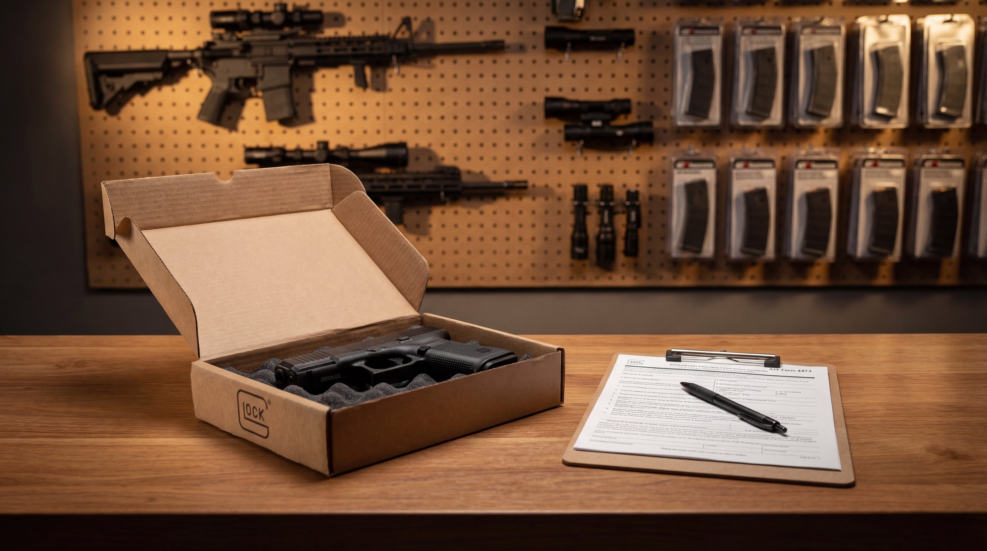 Customers must bring a valid government-issued photo ID and be prepared to complete the required federal Form 4473 and background check before taking possession of the firearm.